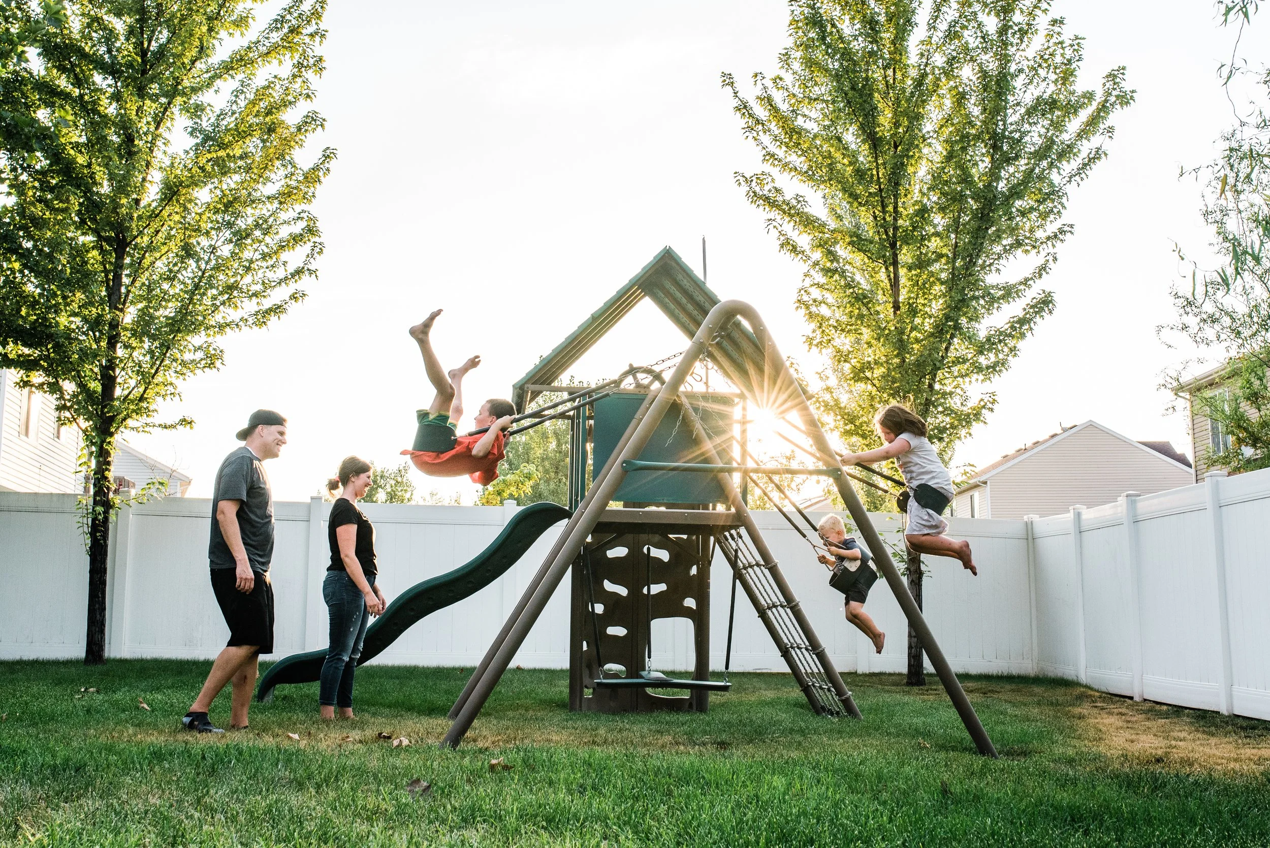 Despite the name, the session can take place wherever your family likes to play. Don’t have a great yard, but love to play at the park? Awesome! Places these sessions have taken place: Grandma & Grandpa’s house, a neighbor’s pool, a local ice cream shop, a neighbor’s yard with a fun swing, around a fire pit, a local trail, etc.